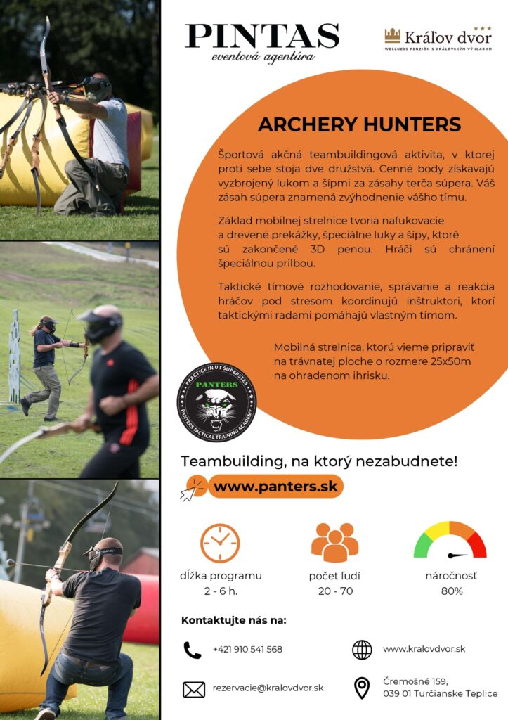 Tvoríme tematické a zážitkové teambuildingy ktoré pripravujeme v spolupráci s eventovou  agentúrou PINTAS, ktorá Vám pripraví program podľa Vašich želaní priamo na kľúč.